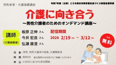 - 男性家事・介護基礎講座介護に向き合う~男性介護者のためのオンデマンド講座~