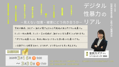 - 【オンデマンド配信】令和7年度 犯罪被害者支援・女性の人権講演会デジタル性暴力のリアルー見えない加害・被害にどう向き合うかー